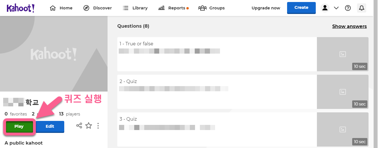 카훗은 만드는 사이트와 게임하는 사이트 주소가 다르니 참고하세요!