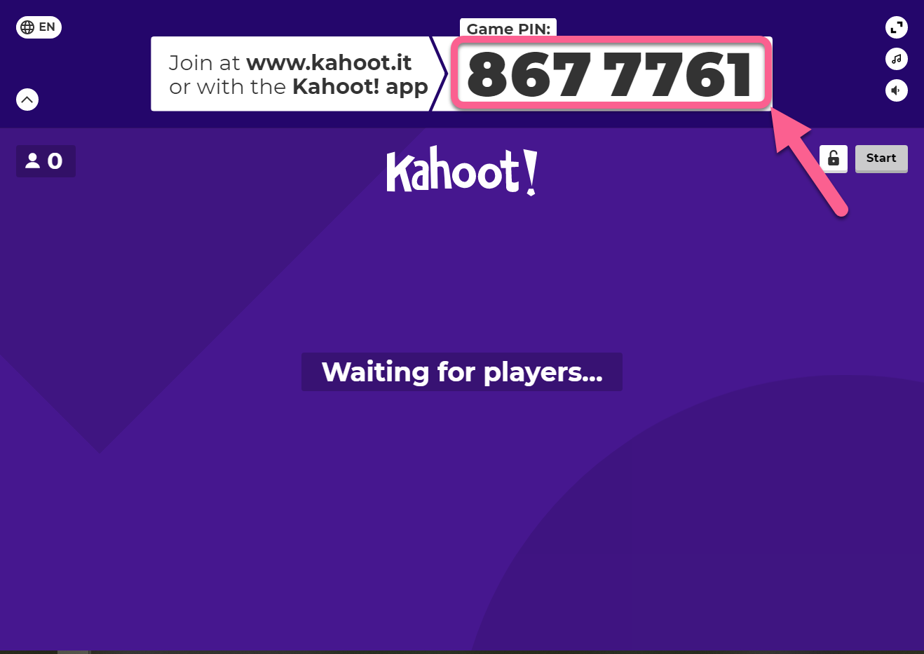 게임 핀(번호)가 생기기를 기다렸다가 참가자(학생)에게 알려주세요.